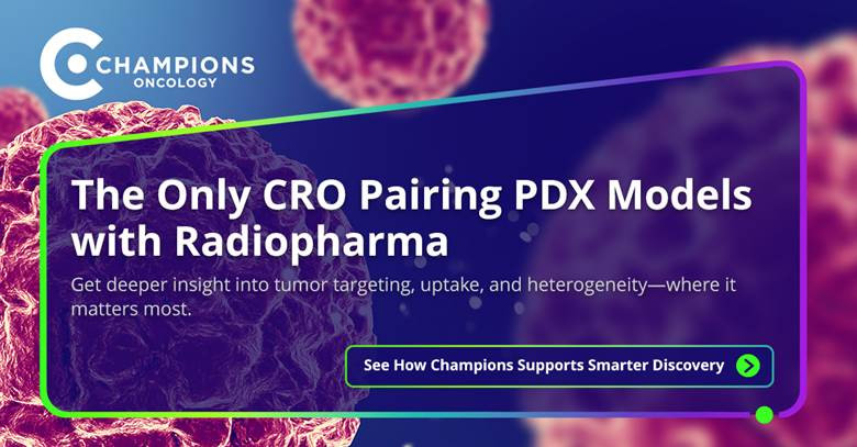 „Unser Ziel ist es, Biopharma-Partnern bei der rascheren Beantwortung kritischer Fragen zu helfen. Dies gelingt mit Daten, welche die reale Tumorbiologie widerspiegeln", so Mike Ritchie, Chief Commercial Officer von Champions Oncology. „Mit der Einbindung von Radionuklid-Workflows in unsere PDX-Plattform verfügen wir über ein einzigartig leistungsfähiges präklinisches Instrumentarium, um die Biodistribution, die zielgerichtete Tumoransteuerung (Tumor Targeting) und die therapeutische Wirkung beurteilen zu können."