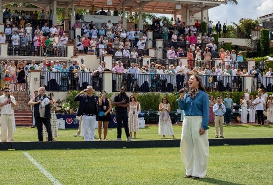 4. Die Country-Sängerin Abbey Cone aus Nashville singt die Nationalhymne vor einer Rekordkulisse beim Finale der U.S. Open Polo Championship im USPA National Polo Center